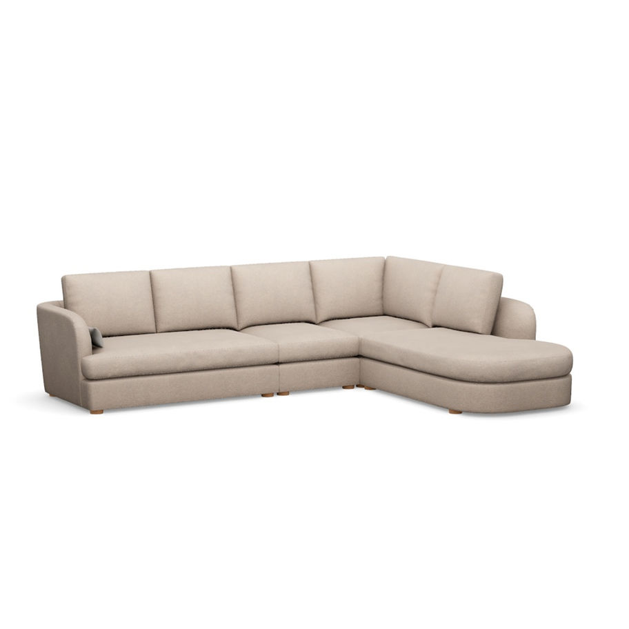 The Dalton sofa and sectional appeal to a relaxed modern sensibility with its curves on the sides of the arms and corners of the rail. The plush seat and back cushions make this perfect for lounging. This sectional can be customized in multiple fabric options, and built out multiple ways.