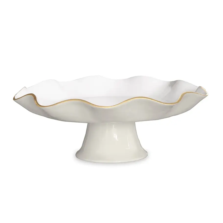 Notable for its flirty curves, elegant rise, and brilliant two-tone finish rimmed in gold, the ENCANTO Carola Pedestal Cake Plate (Cream and White) is a fabulous design that is as practical as it is decorative. Ideal for cake, fruit and desserts, combine with other ENCANTO Carola pieces for an elevated serving set.