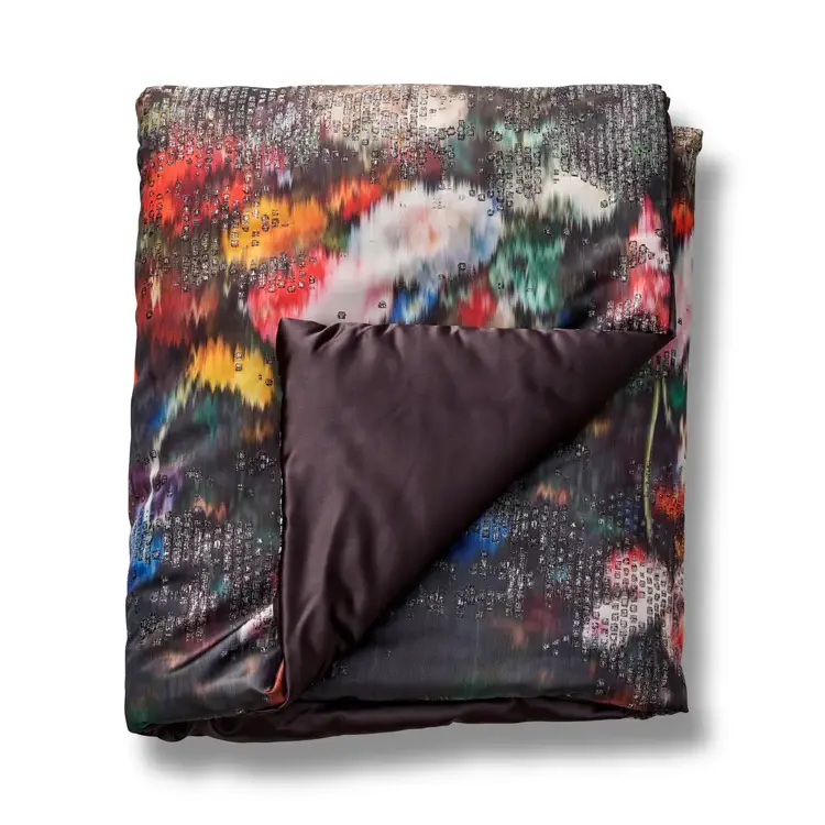 Ibiza mixes a gorgeous soft watercolor jacquard with an effect we call 'eye-glitter.' Throw is padded.