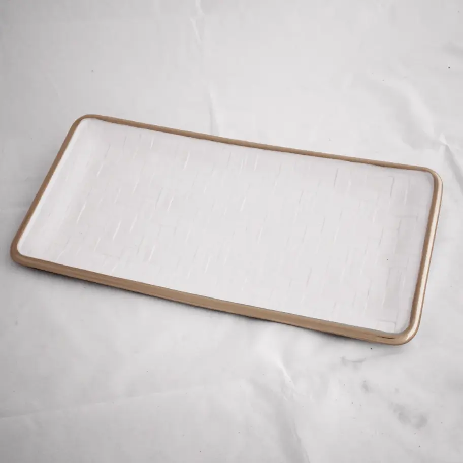 THANNI Bahamas Long Rectangle Tray (White and Gold)